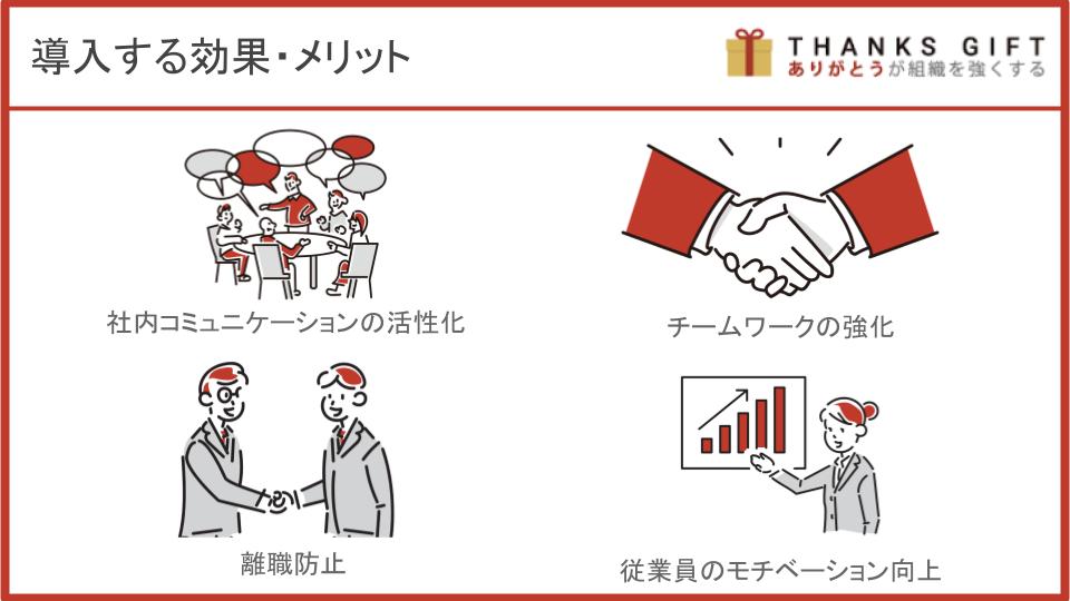 企業がありがとうカードを導入することの主な効果・メリットには、以下のようなものが挙げられます。