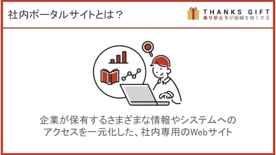 社内ポータルサイトとは、企業が保有するさまざまな情報やシステムへのアクセスを一元化した、社内専用のWebサイトです。
