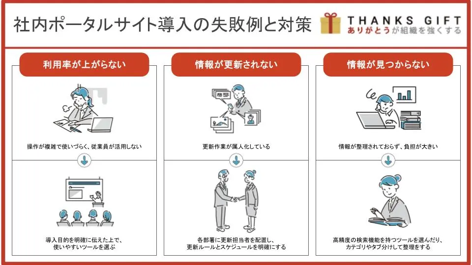 社内ポータルの導入が失敗してしまう典型的なパターンと、その対策を紹介します。