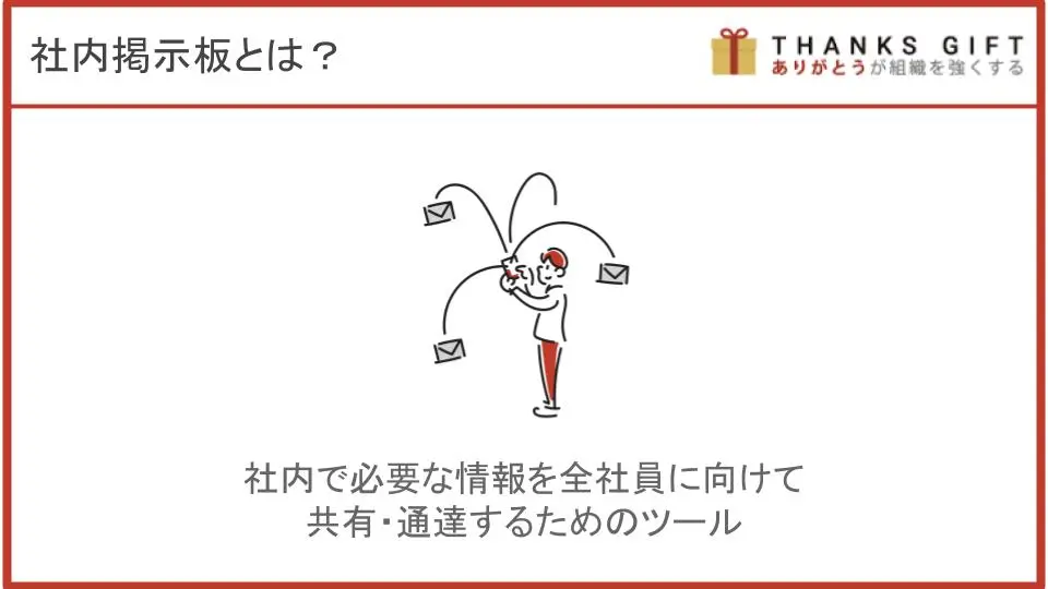 社内掲示板とは、社内で必要な情報を全社員に向けて共有・通達するためのツールのことです。