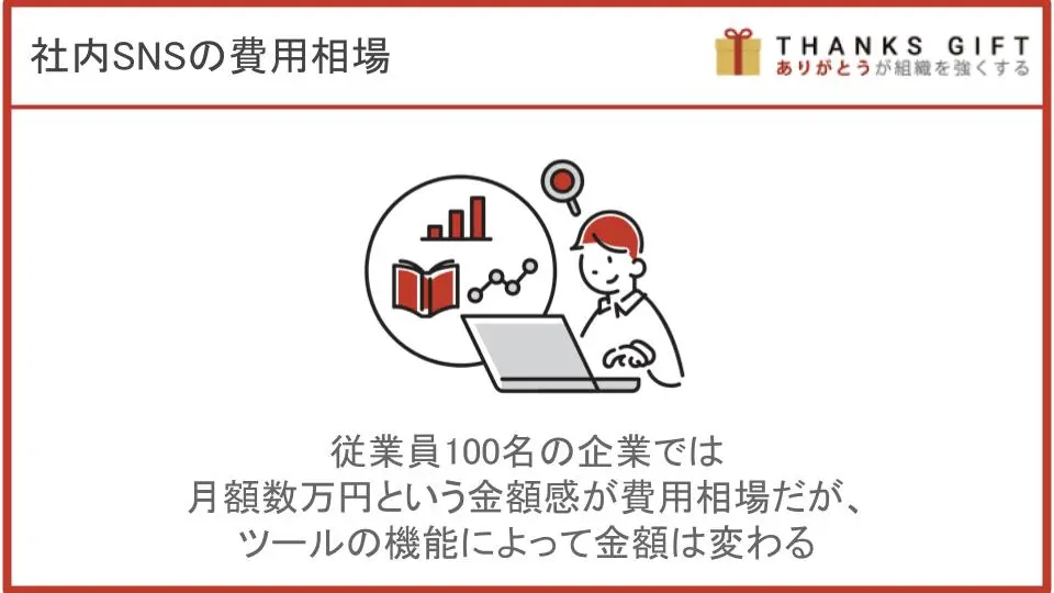 社内SNSのツールやアプリの費用としては、1ユーザーあたり月額数百円ほどの従量課金が一般的です。