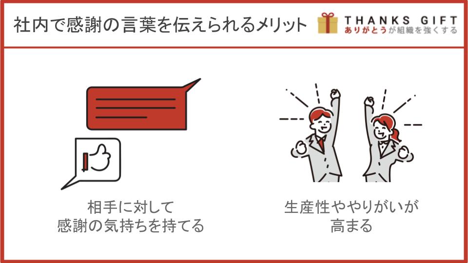 社内でお礼や感謝の気持ちを意識的に伝えるメリットとして以下の点があげられます。
