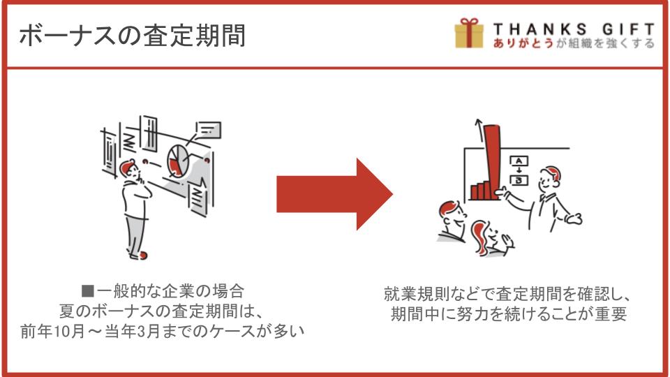 冬のボーナスの査定期間は、当年の4~9月というケースが一般的です。