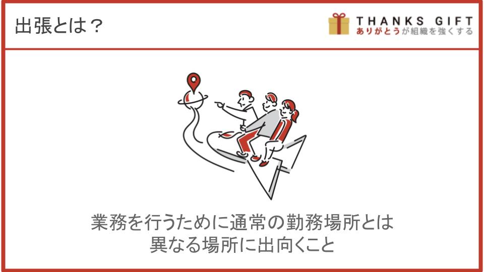 出張とは、業務を行うために通常の勤務場所とは異なる場所に出向くことをいいます。