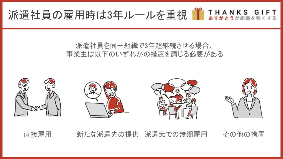 派遣社員を雇用する場合は、5年ルールと併せて、3年ルールの内容を把握しておく必要があります。