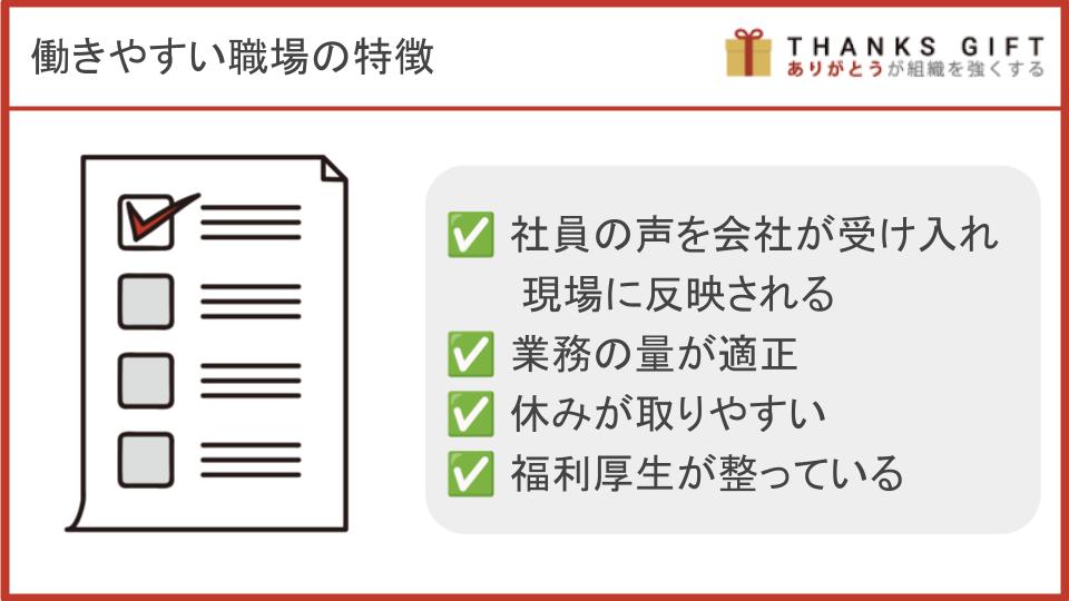 ↓働きやすい職場環境の共通点や条件、事例について紹介した記事はこちら↓