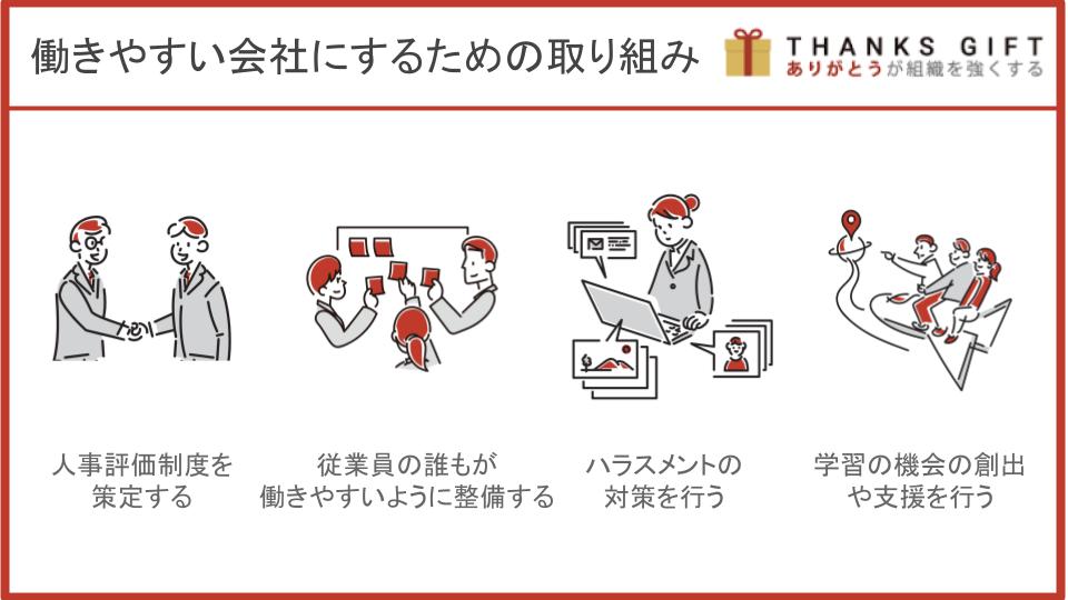 働きやすい会社を目指すためにはいくつかやるべきことがあります。