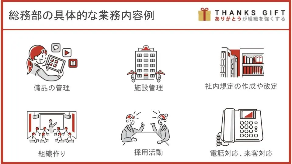 総務部の具体的な仕事内容は、下記のようなものがあります。