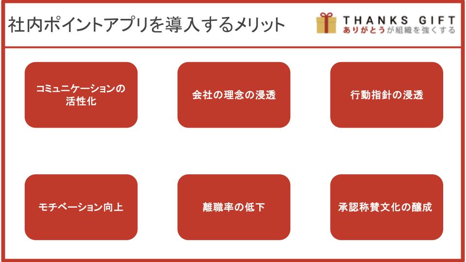 ポイントのやり取りやポイントの交換の仕組みを作ることで、感謝や称賛されるべき取り組みを他の社員に共有が行われ、その人のモチベーション向上に繋がったり、コンピテンシー(行動指針)の浸透や行動を促進する仕組みづくりにもなります。