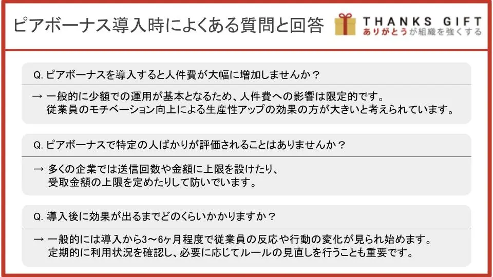 ピアボーナスを導入する際によくある質問とその回答を紹介します。