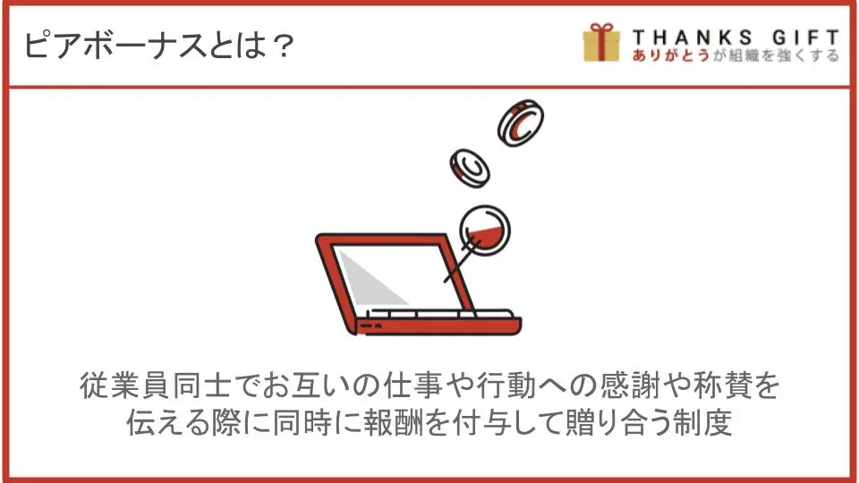 従業員同士が報酬を贈り合う制度、あるいは、その際の報酬を指す言葉が「ピアボーナス」です。