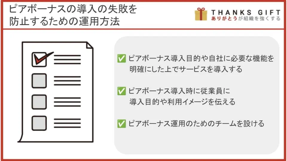 - ピアボーナスの導入の失敗を防止するための運用方法