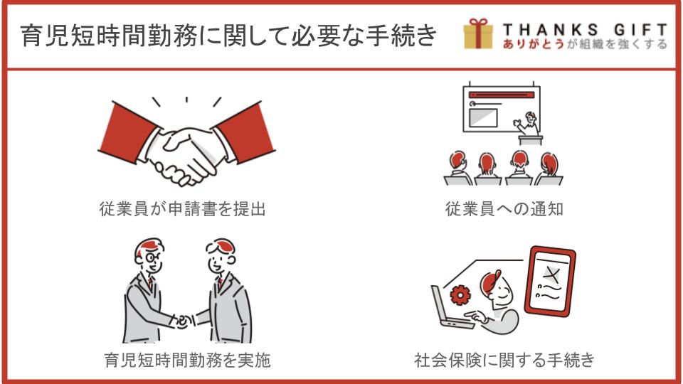 育児短時間勤務に関して企業が行う手続きを紹介します。