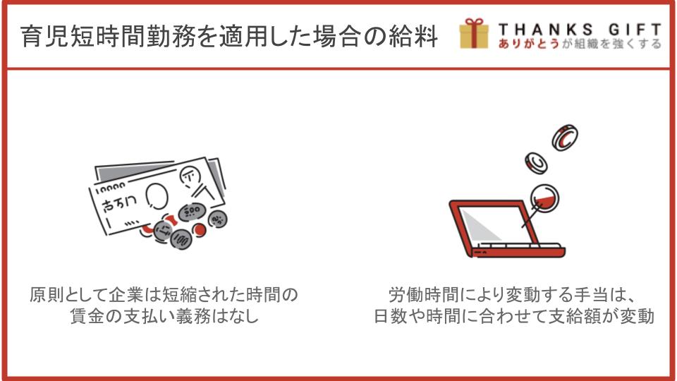 そのため、育児短時間勤務を行う間は労働時間に応じて給料は減額になります。