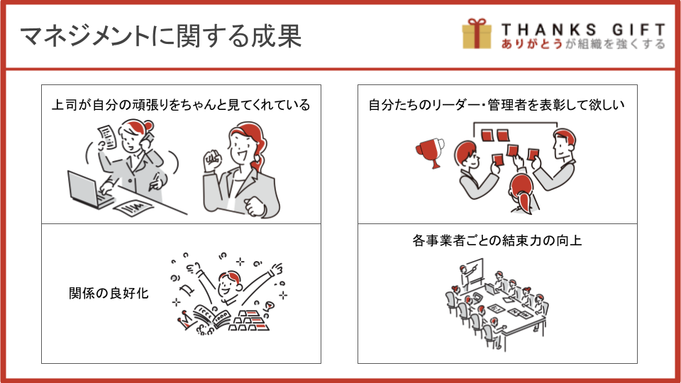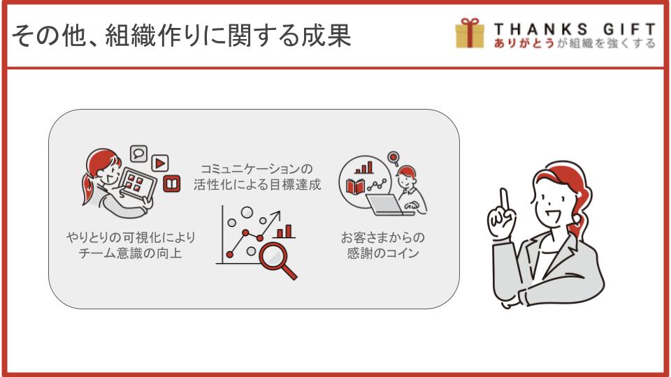 - THANKS GIFT導入前の課題であった、縦のコミュニケーションが取りづらいという問題は解消されつつある(日本トランスシティ株式会社)