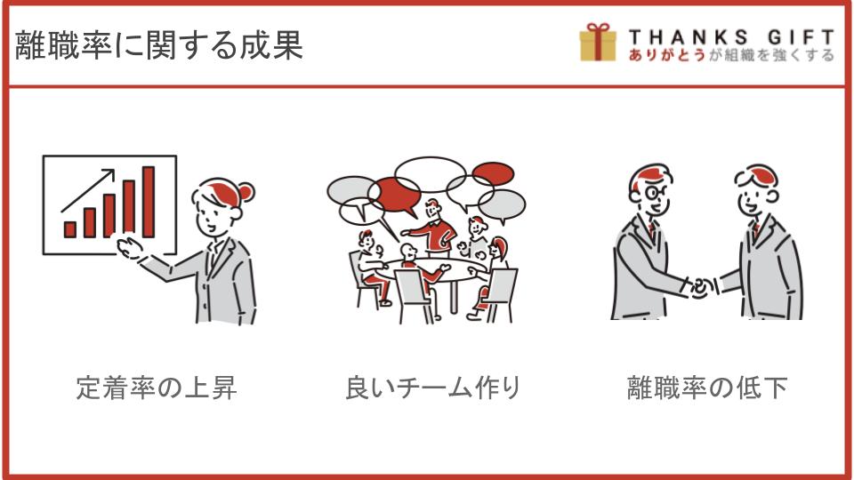 - 離職率はTHANKS GIFT導入後から徐々に下がってきており、一番高いときから10%程度下がりました(株式会社メディカルアーツ)