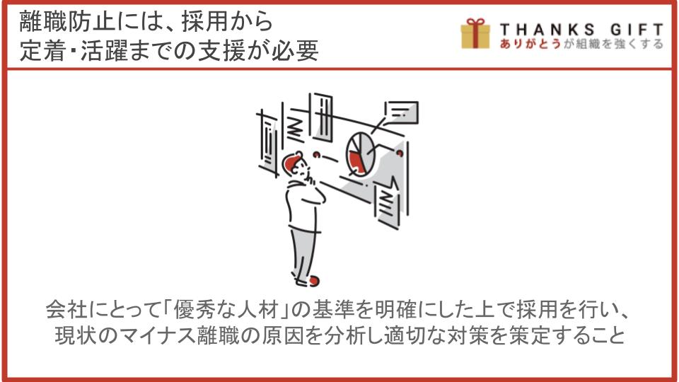 重要なことは、会社にとって「優秀な人材はどのような人物なのか」という基準を明確にした上で採用を行い、現在起こっているマイナスな離職の原因を分析し適切な対策を策定することです。