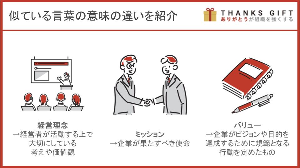 それぞれの言葉が企業理念とビジョンとどのように違うのかを解説します。