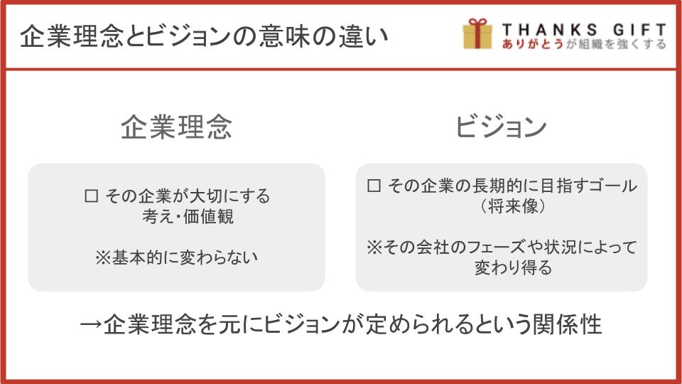 ですので、企業理念を元にビジョンが定められるという関係性にあります。