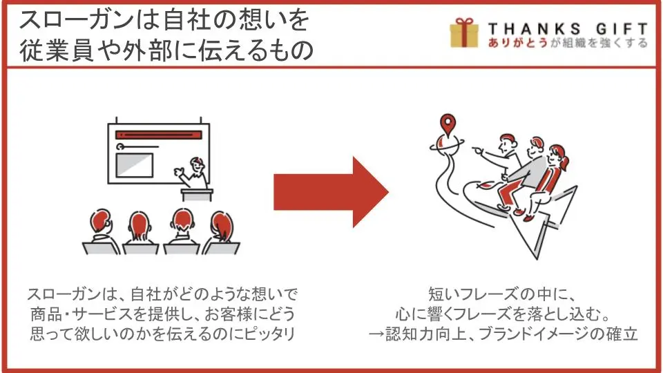 スローガンは、自社がどのような想いで商品・サービスを提供し、お客さんにどう思って欲しいのかを伝えるのにピッタリです。